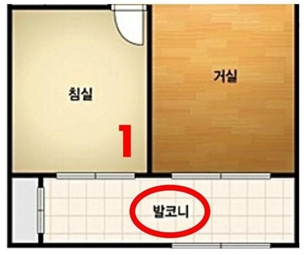 8~90년대 지어진 아파트에서 흔한 구조로햇빛이 드는 발코니를 기준으로